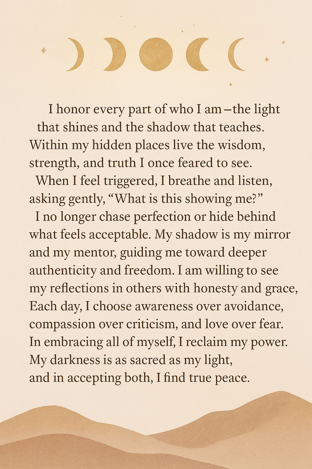 To live consciously is to make peace with all that we are — light and dark, sacred and human. Because when we embrace every part of ourselves, we finally step into the fullness of our being — free, whole, and unafraid to shine.